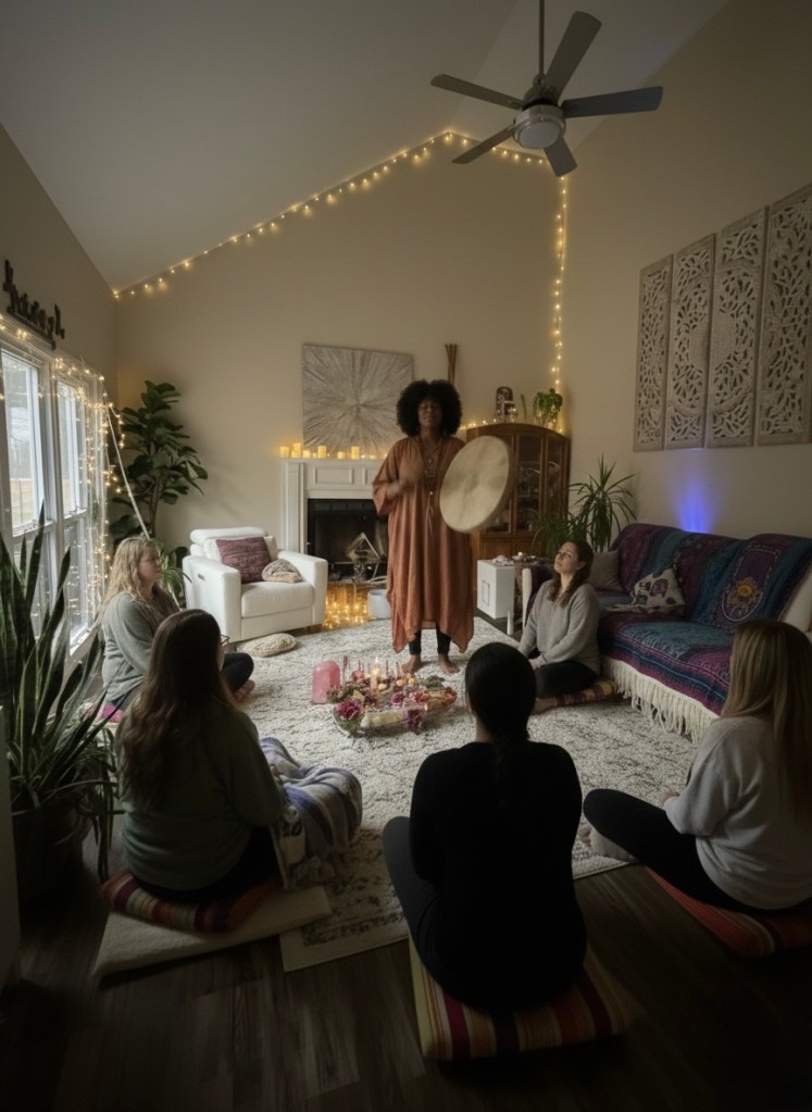 It is a fun, lighthearted, yet deeply intentional gathering at Radiant Estates. We combine ancient shamanic tools—like drumming and sacred smoke—with modern connection. Think of it as a “Soul Social” where you can sip tea, explore past-life regression, and enjoy lightning intuitive readings in a safe, luxury environment.